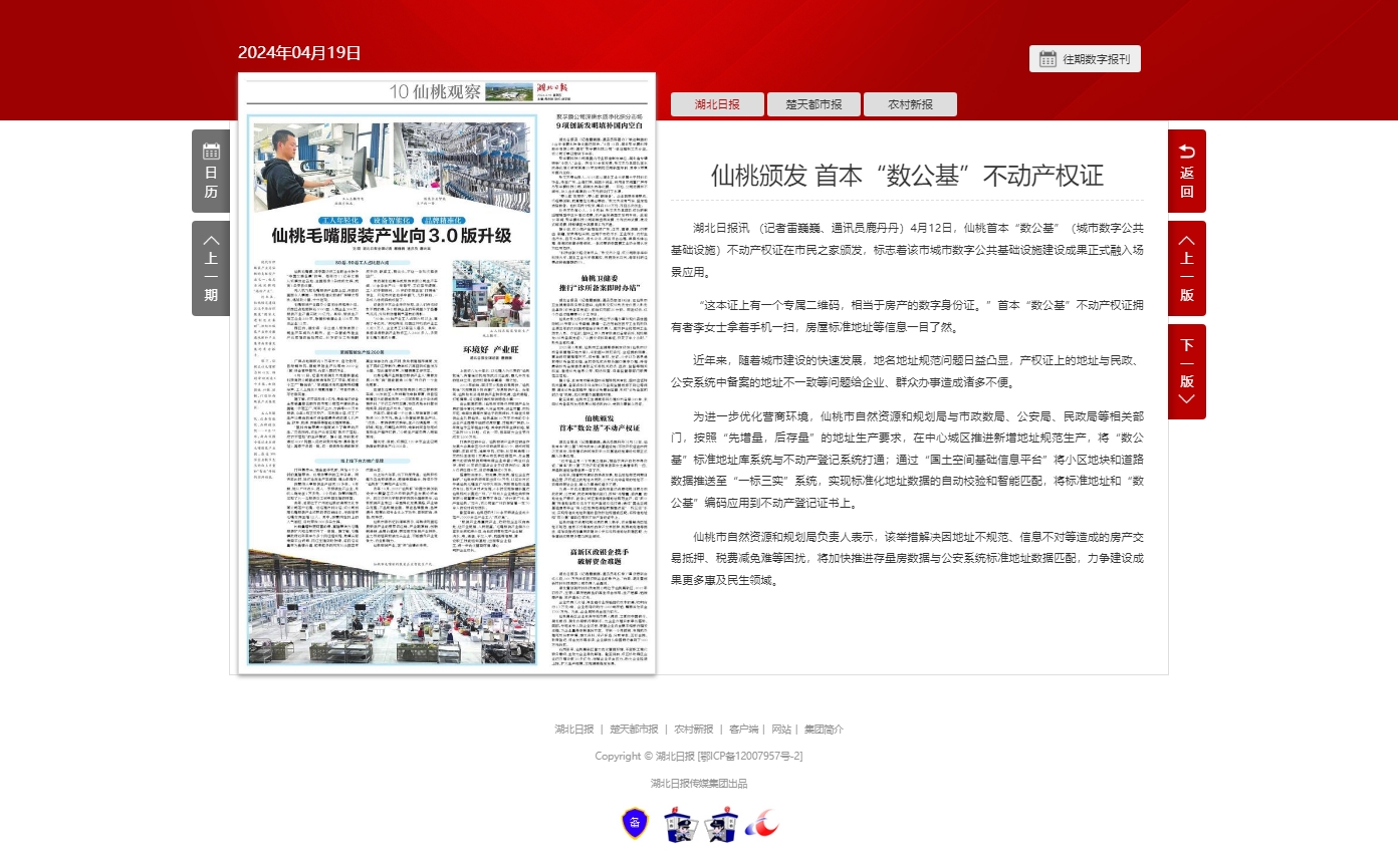 湖北日报:仙桃颁发 首本“数公基”不动产权证