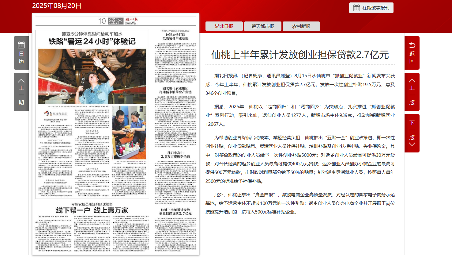 湖北日报:仙桃上半年累计发放创业担保贷款2.7亿元
