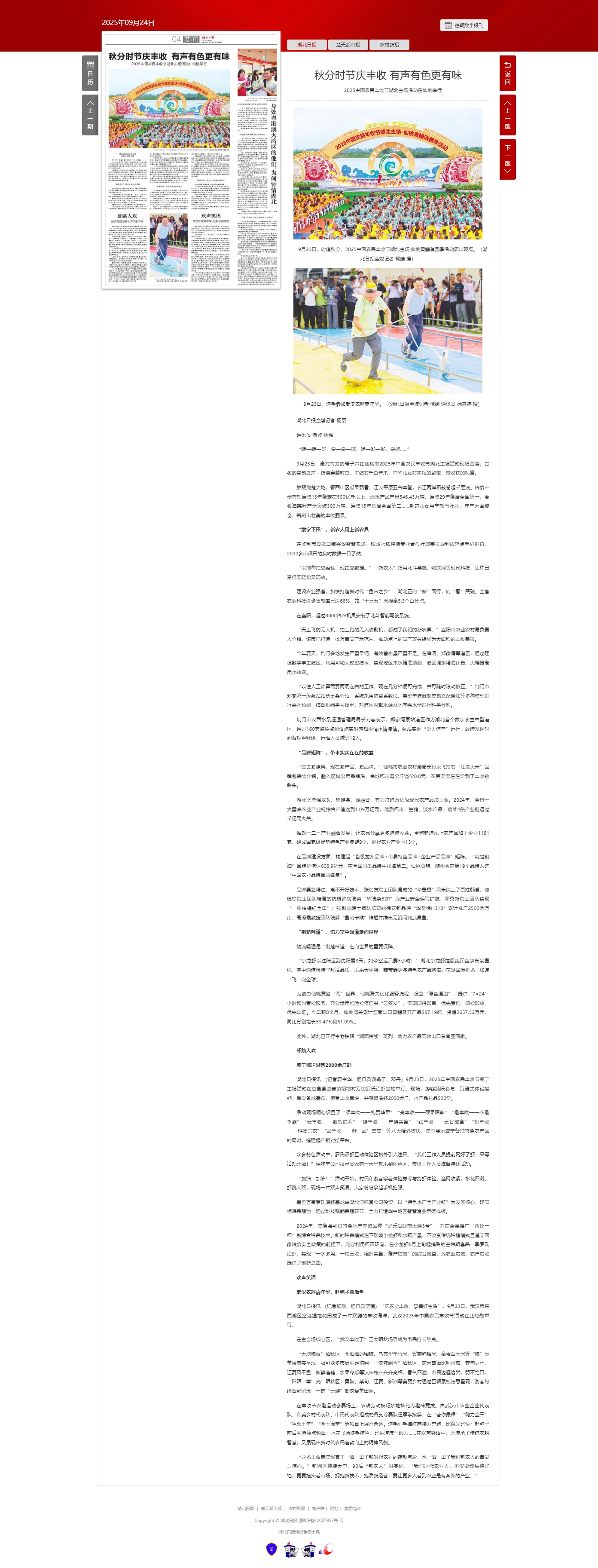 湖北日报:2025中国农民丰收节湖北主场活动在仙桃举行