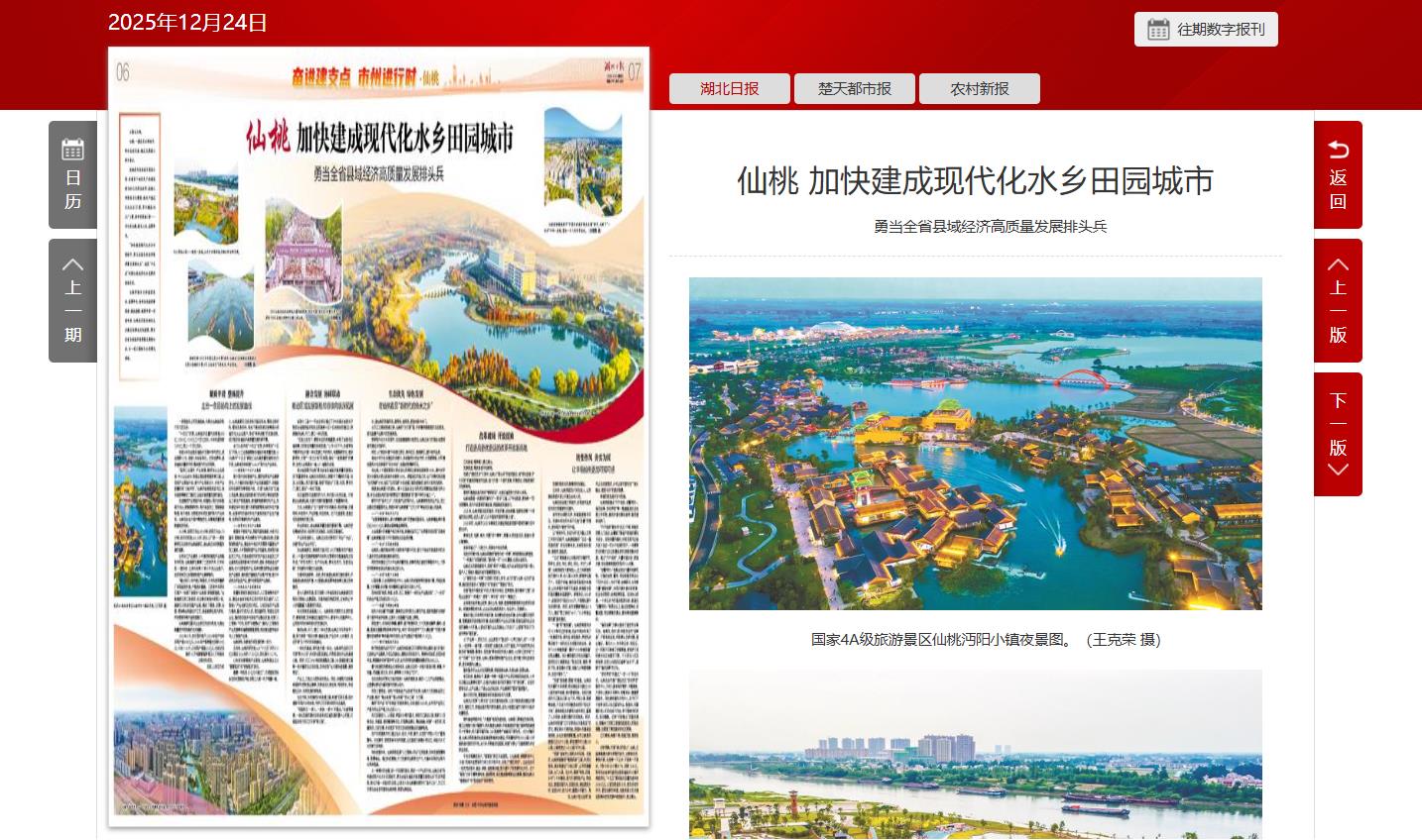 从一湾清水的治理,到一片田园的美化,再到一个产业的升级,仙桃正将“加快建成现代化水乡田园城市、勇当全省县域经济高质量发展排头兵”的宏伟蓝图,细化为每一步坚实的足迹,让更多人在仙桃看到新时代“鱼米之乡”,为江汉平原及全省县市提供仙桃样板、探索仙桃经验。