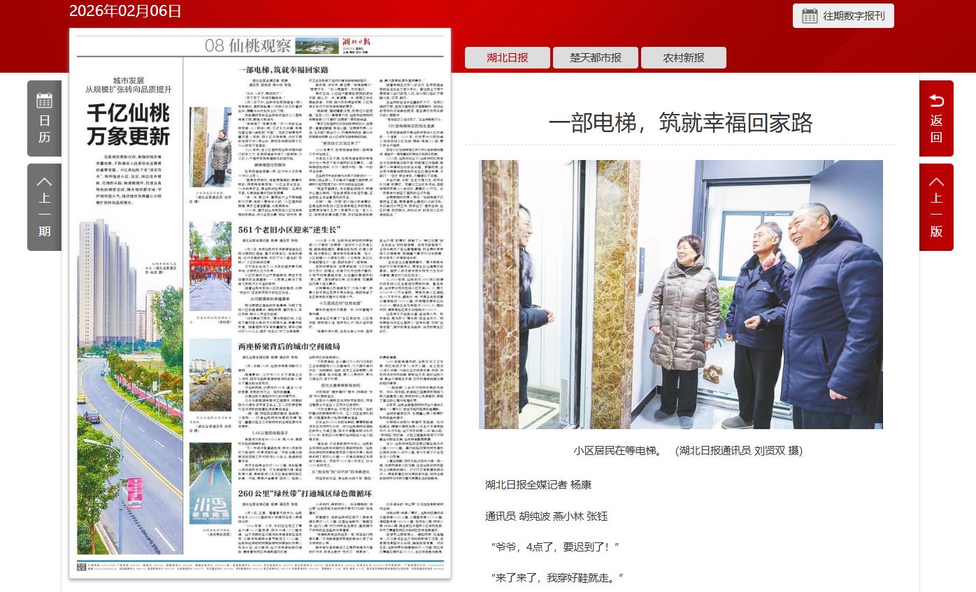 检察院宿舍楼只是仙桃市老旧小区改造的一个缩影。2025年,该市累计为楼龄逾20年的老旧小区加装(更新)电梯101部,惠及数千户居民。