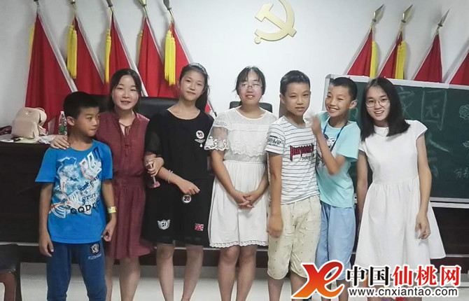7月19日,来自湖北第二师范学院“麦田守望者”社会实践队的志愿者在剅河镇胡湾村、谢场村举办希望家园告别仪式。