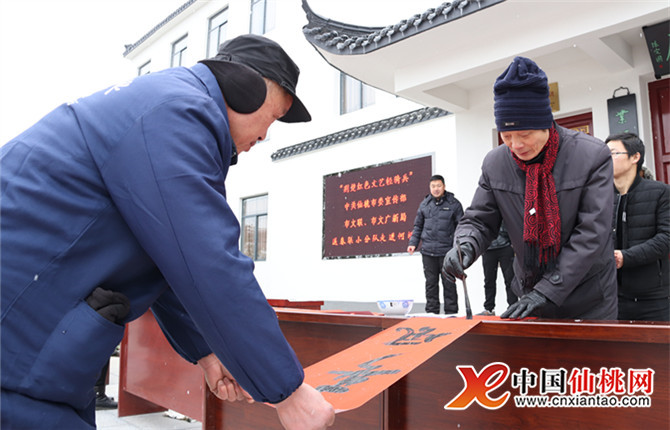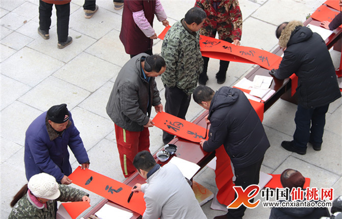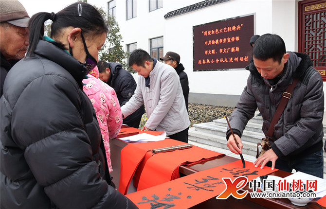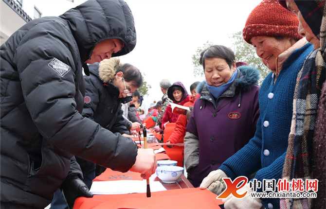 1月26日,虽然节气正值大寒,长埫口镇何坝广场上却暖意融融、欢声笑语、热闹非常。原来,由市委宣传部、市文联、市文广新局组成的荆楚“红色文艺轻骑兵”小分队正在这里开展“送春联”活动,过往群众听闻后,纷纷前来索取。