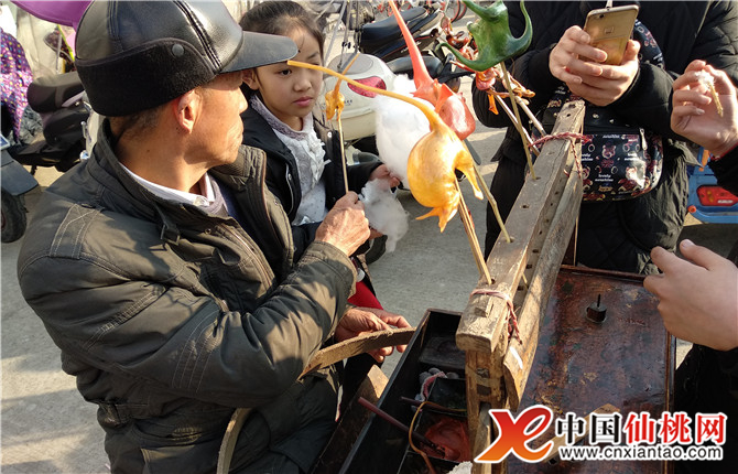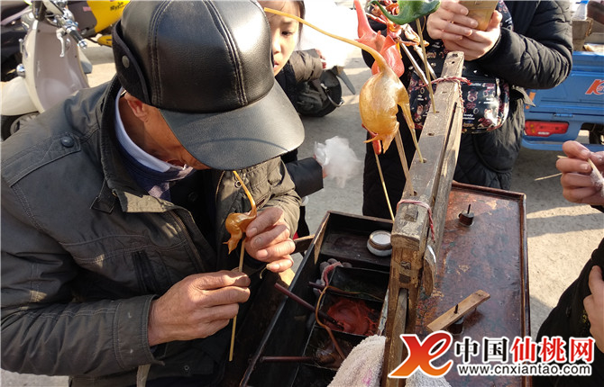 2月1日,市体育广场上,一个吹糖人的小摊前围满了市民,形式各异、活灵活现的生肖糖人让大家驻足围观、啧啧称奇。