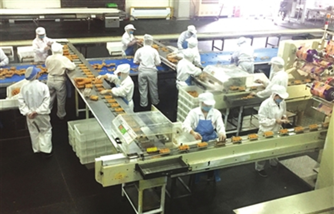 湖北华美食品有限公司自2010年落户干河街道办事处以来,主要从事烘焙类(月饼和饼干)、膨化类、糖果类食品的生产。公司现有现代化大型食品生产线5条,产品常年畅销全国各地及海外30多个国家和地区。图为4月14日,公司曲奇饼干生产车间工作现场。(摄影记者 张曼)