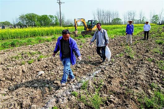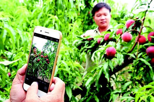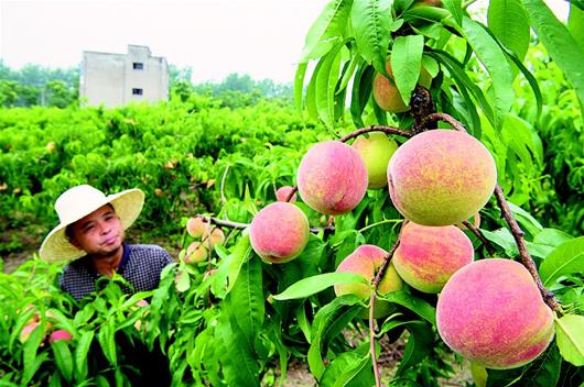 图为:许先平响应国家振兴乡村的战略,在当地流转 3000多亩土地,扩大桃子种植面积。