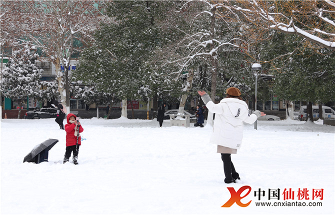 仙桃第一场大雪 带给市民无限乐趣