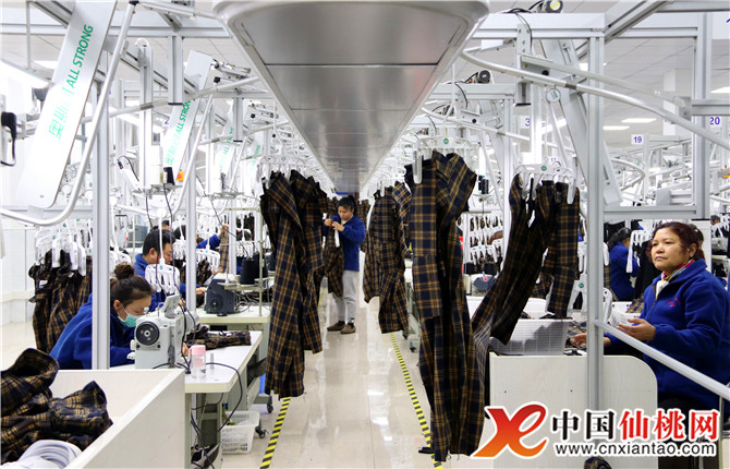 “作为毛嘴服装产业提档升级的示范公司,我们率先引进了66台国内先进的智能缝纫设备,建成了3条自动吊挂系统生产线。”公司负责人兴致勃勃地介绍,“今年订单不断,春节期间,公司还没开工就已接到了不少客户的订单。现在,工人们正在争分夺秒进行生产,确保按时、保质保量地完成每一批订单任务。”