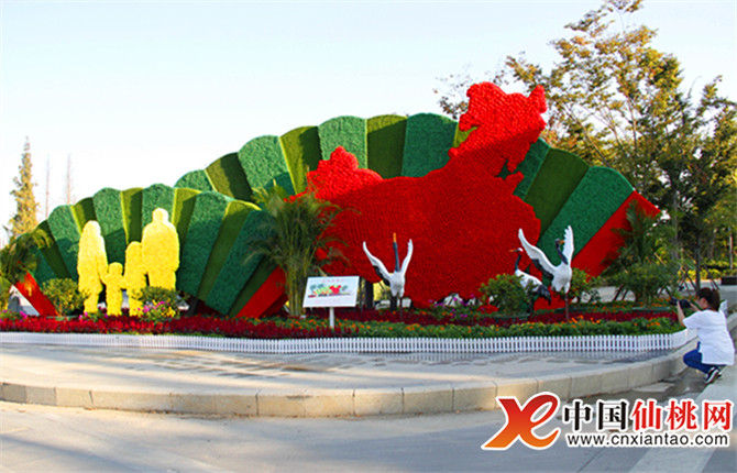 前通河段的花展主题为“家和万事兴”,展点扎景由折扇、仙鹤、中国地图、家庭剪影等元素构成,寓意大家、小家和和睦睦、繁荣兴盛。(本网记者 盛慧慧)