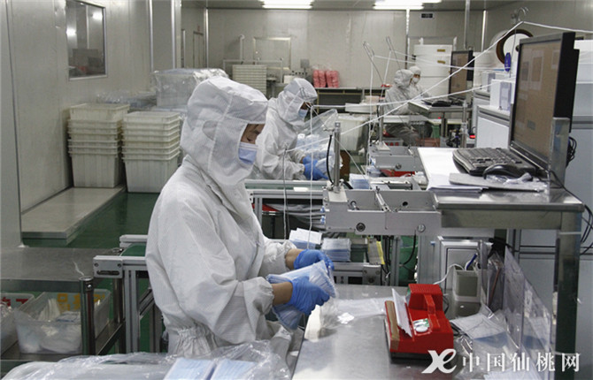 金士达医用产品有限公司是一家从事医用敷料及一次性医疗卫生用品研发、生产与销售的外向型出口企业。公司主要生产医用脱脂纱布、医用纱布片、口罩等无纺布制品。图为日前,企业无菌车间内,工人正在进行口罩装袋封口操作。(本网记者 盛慧慧)