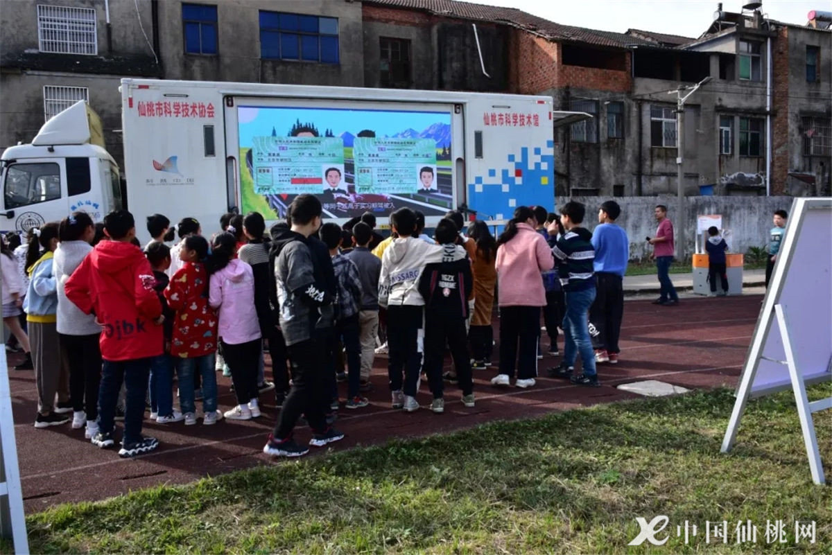 为提高广大群众的交通法制和文明交通意识,仙桃交警支队与市科协达成协议,在“122全国交通安全日”活动期间,开出“科技大篷车”,在全市各乡镇、城区开展巡游宣讲,利用“科技大篷车”超大屏幕,不断播放各种交通安全宣传“微电影”、小视频、公益广告,让观看者通过声光影的生动播放,在脑海中形成对交通安全知识更深刻的记忆,从而提高自我保护能力。图为11月3日,郑场镇初级中学校园内,学生们正在“科技大篷车”屏幕上观看交通安全宣传视频。(仙桃网记者 盛慧慧)