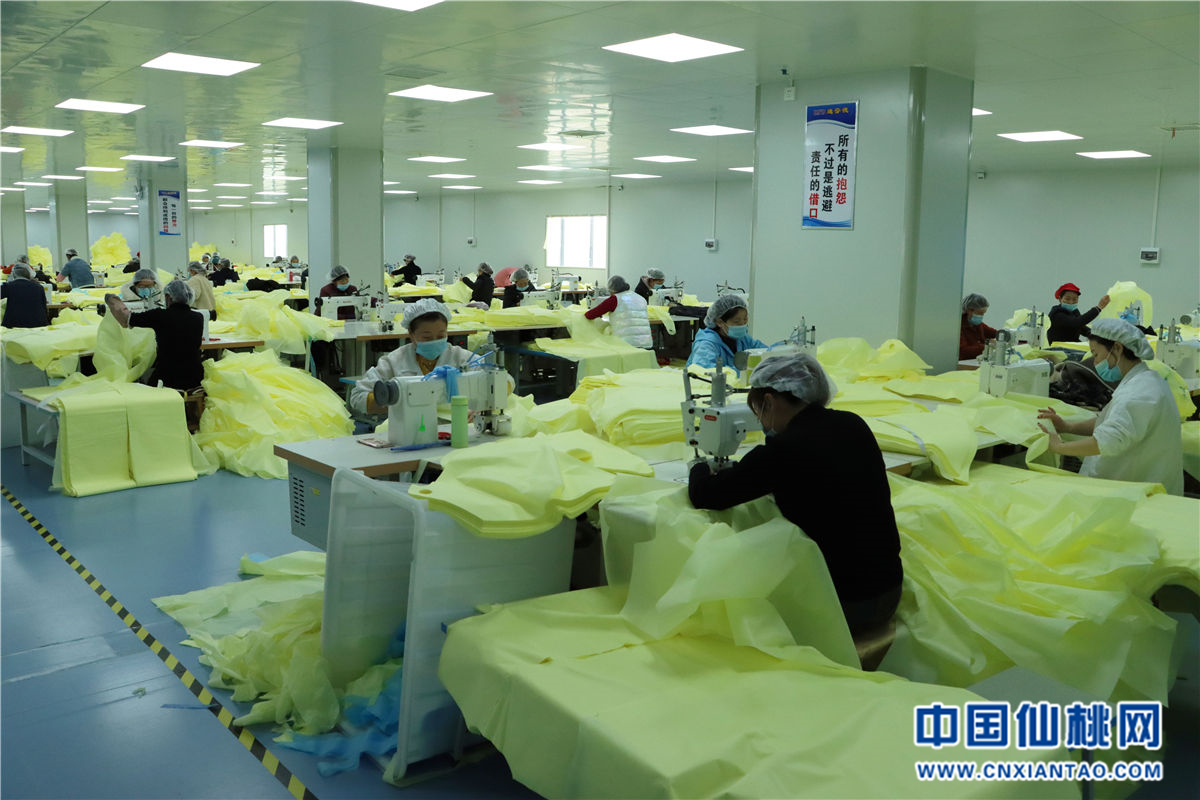 3月3日,陈场服装科技产业园引进的迪芬德防护用品有限公司二期项目建设启动。该公司主要以生产高端医用防护服、隔离衣、手术衣为主,以及研发医疗防护用新材料。目前已吸纳陈场本地及剅河一带300名居民就近就业,月产值500万元。二期项目将建成全国领先的实验室、生产车间,打造科技含量更高的生产线。图为消毒车间内的工人正赶制防护服。(仙桃网见习记者 张姝玥)