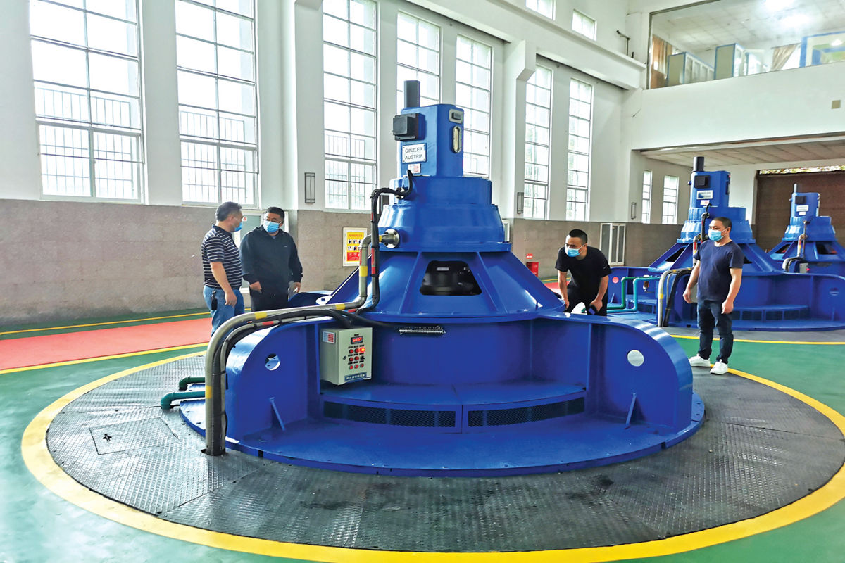市水利和湖泊局严格执行 24 小时值班值守制度,所有班子成员驻点各大泵站和涵闸,一线调度指挥,保证关键时候泵站开得及时、渍水排得快速。图为排湖泵站泵房内,值班人员正检查机组运行情况。(记者 胡纯波)