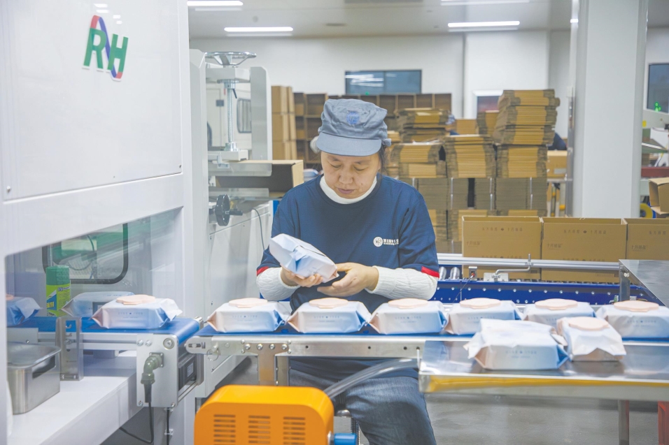 强农公司负责人邵自迪介绍,“吉祥盘龙鳝”这道菜式非常受上海人喜爱,对市民来说鳝鱼营养价值高又好吃,但处理起来相对繁琐,我们便将鳝鱼进行处理加之调味,市民买回家蒸熟即可,这种方式比较契合市场需求;我们在2021年增资3000万元新上黄鳝预制菜加工项目,投产后可年生产成品1000吨,产值6亿元。