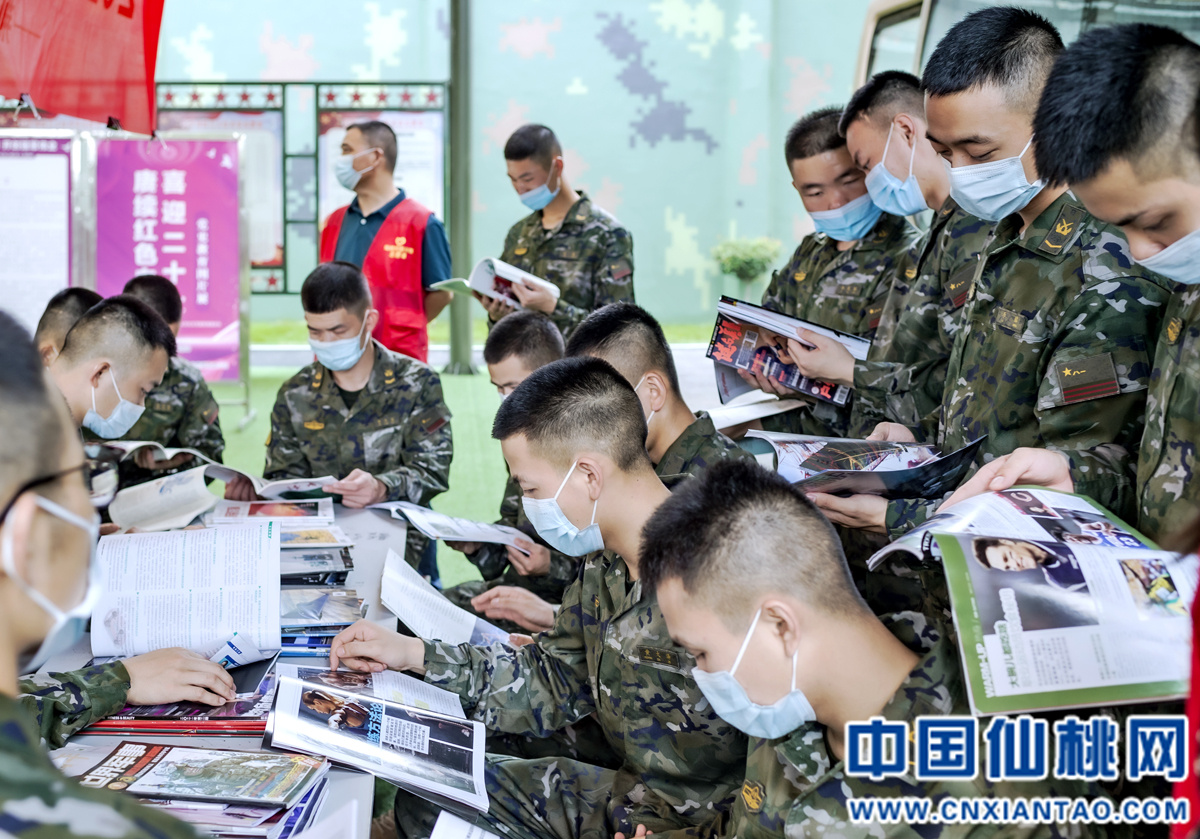 市图书馆开着流动图书车送去种类丰富多样的图书,涵盖文学类、廉政类、历史类、财经类、励志类、军事类图书和古典名著,精选《读者》《世界兵器》《现代舰船》等杂志20种,共计1800余册供军人们自由阅读。