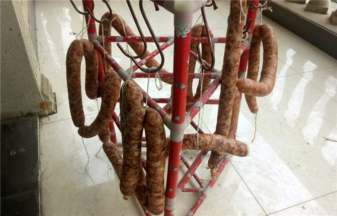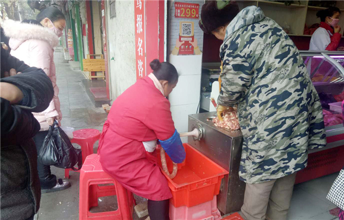 “孙子最喜欢吃腊肠,自己家里没有专门的机器,一般都是在专门灌腊肠的地方弄的。现在生活条件好了,什么都方便,直接可以在店面称肉,之后放佐料、灌肠等工序店里面全包了,我只用买回家把腊肠自己晒晒就行了。”看着一旁玩耍的孙子,郑大爷介绍道。