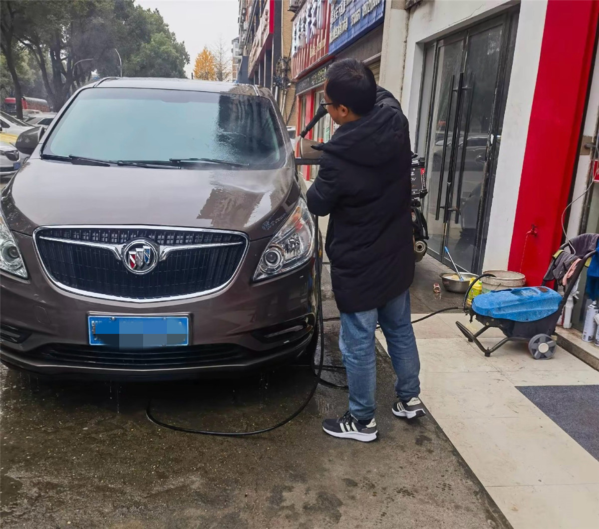 泰平租车行的工作人员正在对车辆进行清洁