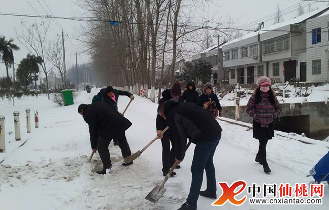 连日来,我市遭遇大范围降雪,道路积雪严重,为保障群众出行安全,郑场镇党员干部齐上阵,在各主要干道、重要节点、贫困户房前屋后疏堵保畅,开展雪天安全宣传,用言行温暖身边人。