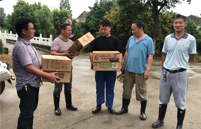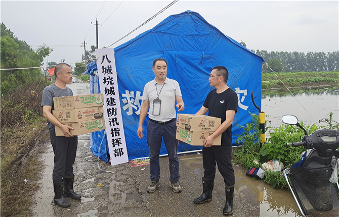 “党员干部战斗在第一线、冲锋在最前沿,防汛救灾,我们也愿意尽绵薄之力。”7月11日,在张沟镇八城垸城建防汛指挥部,一箱箱方便食品送到值守人员手中。