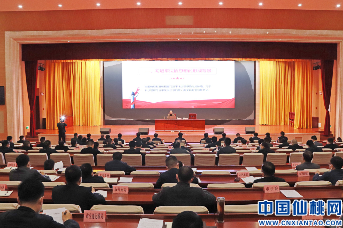 11月12日,市委理论学习中心组举行辅导报告会,邀请教育部长江学者特聘教授、华中科技大学法学院院长汪习根,为全市领导干部作《习近平法治思想的时代背景、核心要义与实践要求》专题辅导报告。市委书记罗联峰主持并讲话。