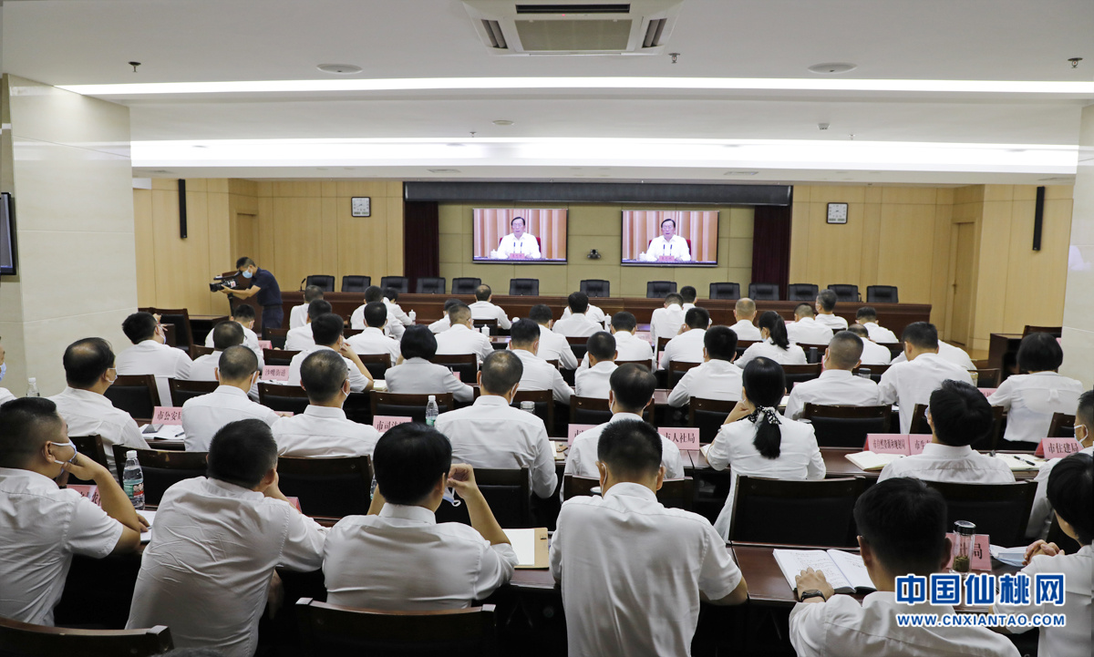 市领导吴熙垚、颜志超、杜伟华、胡军波、代兆敏在仙桃分会场参加会议。(文/仙桃日报记者 李兵 摄/仙桃网记者 盛慧慧)