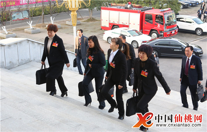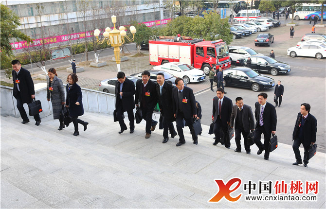 12月25日上午,仙桃市第九届人民代表大会第二次会议在仙桃职业学院会堂隆重开幕。肩负全市人民重托的代表们,精神饱满的步入庄严的会场,他们将履行宪法法律赋予的神圣职责,共商仙桃发展大计,共绘建设水乡田园城市和社会主义现代化强市的美好明天。图为人大代表陆续进入会场。(本网记者 胡肖文 陈芬)