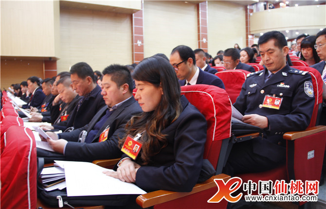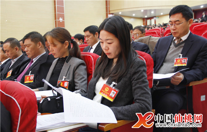 12月25日上午,参加仙桃市第九届人民代表大会第二次会议的代表们在认真听取和审查政府工作报告。(本网记者 胡肖文 陈芬)
