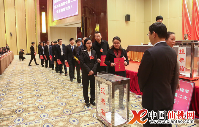 12月26日下午,市政协九届二次会议举行选举大会,政协委员们投下神圣一票。图为投票现场。(本网记者 张岂 胡亮)
