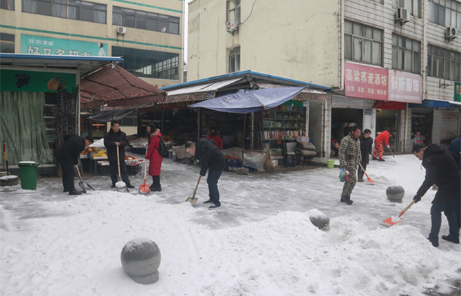 在办事处的组织下,全体机关干部拿起铁锹和扫帚,除在何李路、钱沟路、黄荆大道等主要路段,还到各自包驻的村(社区)背街小巷及住宅小区开展扫雪除冰行动、道路出行的防滑工作,全力做好防灾减灾工作。虽然寒风凌冽,但大家依旧热情高涨,给寒冷的冬天带来了浓浓的暖意。(本网记者 张岂)