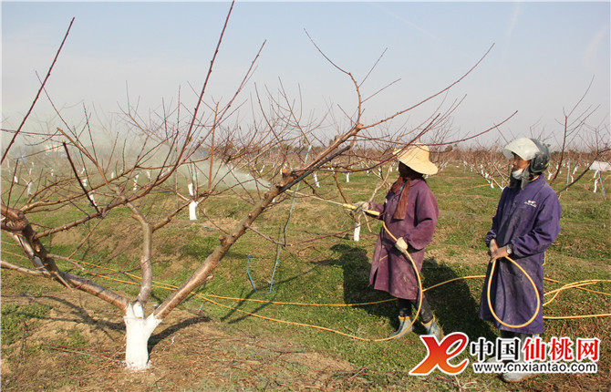2月12日,在湖北阿尔迪有机生态园内,果农们正忙着给修剪后的桃树消毒,为今年夏季果品丰收打好基础。据悉,该生态园内有樱桃、无花果、杨梅等20多个水果品种,年产可达2500吨。(本网记者 胡亮)