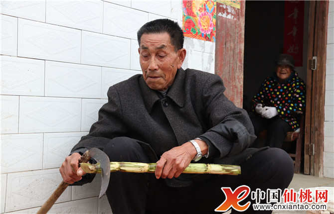 在郭爹爹家右手边第八家的村民张楚才家门口,一样也是在忙活着甘蔗,张楚才用刀将甘蔗砍成一节一节的,装进麻袋里,女婿廖会涛则麻利地将沉甸甸的麻袋搬到车子的后备箱,搬完后,忍不住拿起一节甘蔗就直接吃起来。“岳父种的甘蔗,我最爱吃,吃了十多年了。今天我们全家20多人在仙桃城区过年,其他人正在做团圆饭,我就和岳父赶回农村的老家拿这些自家田里的蔬菜甘蔗,为团聚增加更多熟悉的年味。”