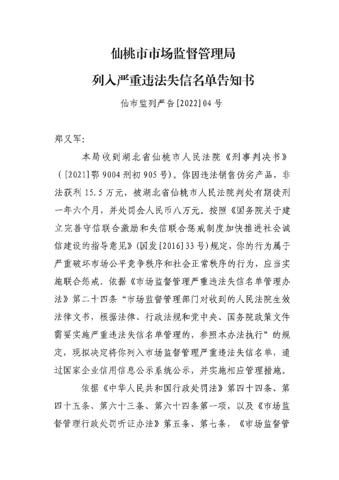 违法销售伪劣产品,非法获利15.5万元,被列入失信名单!