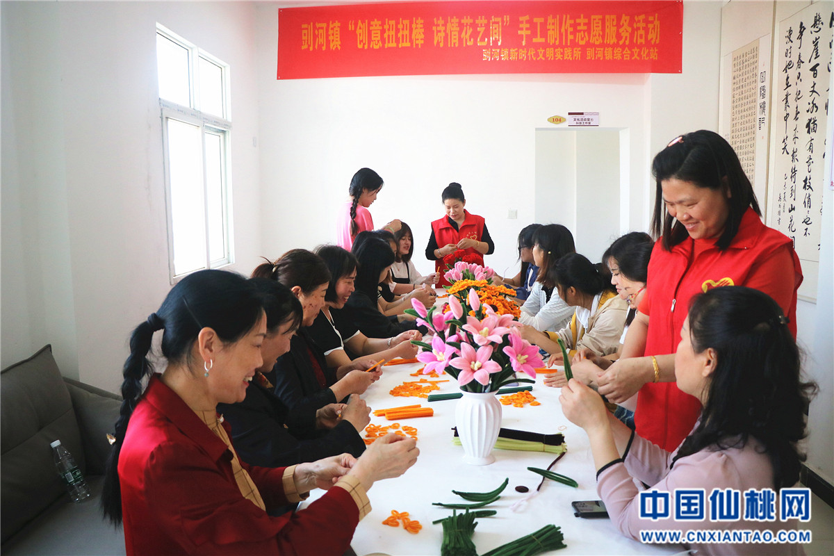 5月22日,剅河镇文化站组织开展了“创意扭扭棒 诗情花艺间”手工制作志愿服务活动,吸引了周边妇女踊跃报名参与其中。