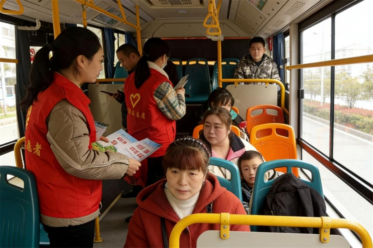 近日,市公交总公司组织工作人员走进公交车厢、公交站点开展“文明公交,绿色出行”活动,向乘客发放“绿色出行,你我同行”宣传彩页,倡导大家尽量选用公交、骑自行车、步行等绿色出行方式,争做绿色出行的宣传者、推动者、倡导者,让城市多一点绿色,多一路畅通,多一份文明。还通过公交车显示屏全天候播放“文明健康 绿色出行”宣传标语,在潜移默化中提高大家绿色出行意识,养成绿色出行好习惯。(仙桃网记者 胡肖文 通讯员 童辉)