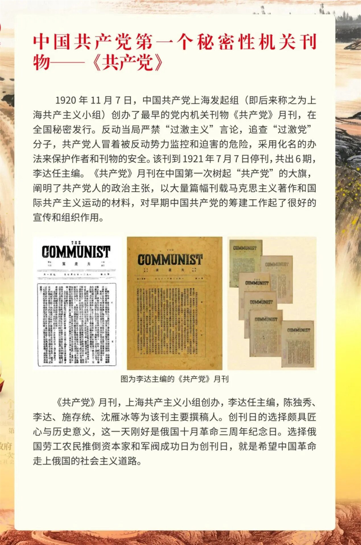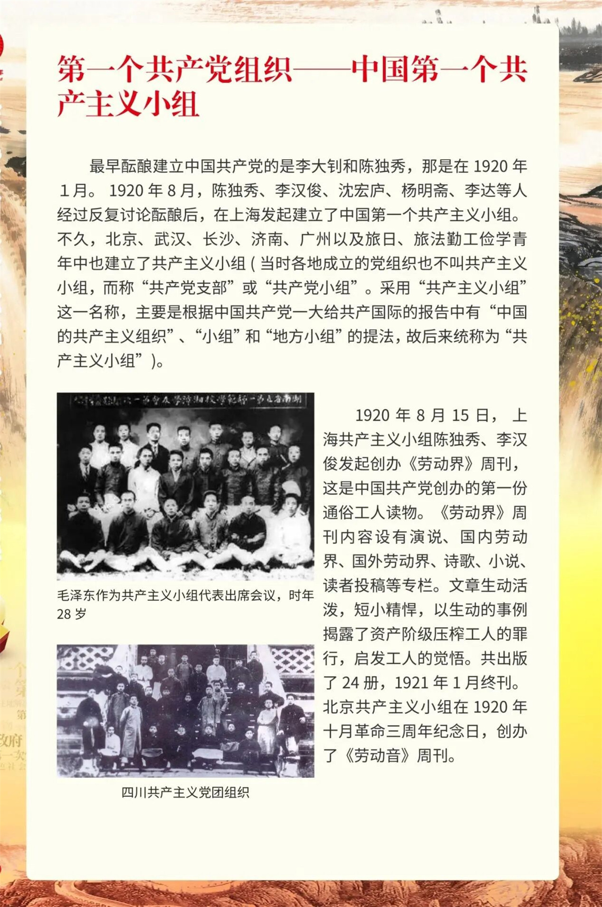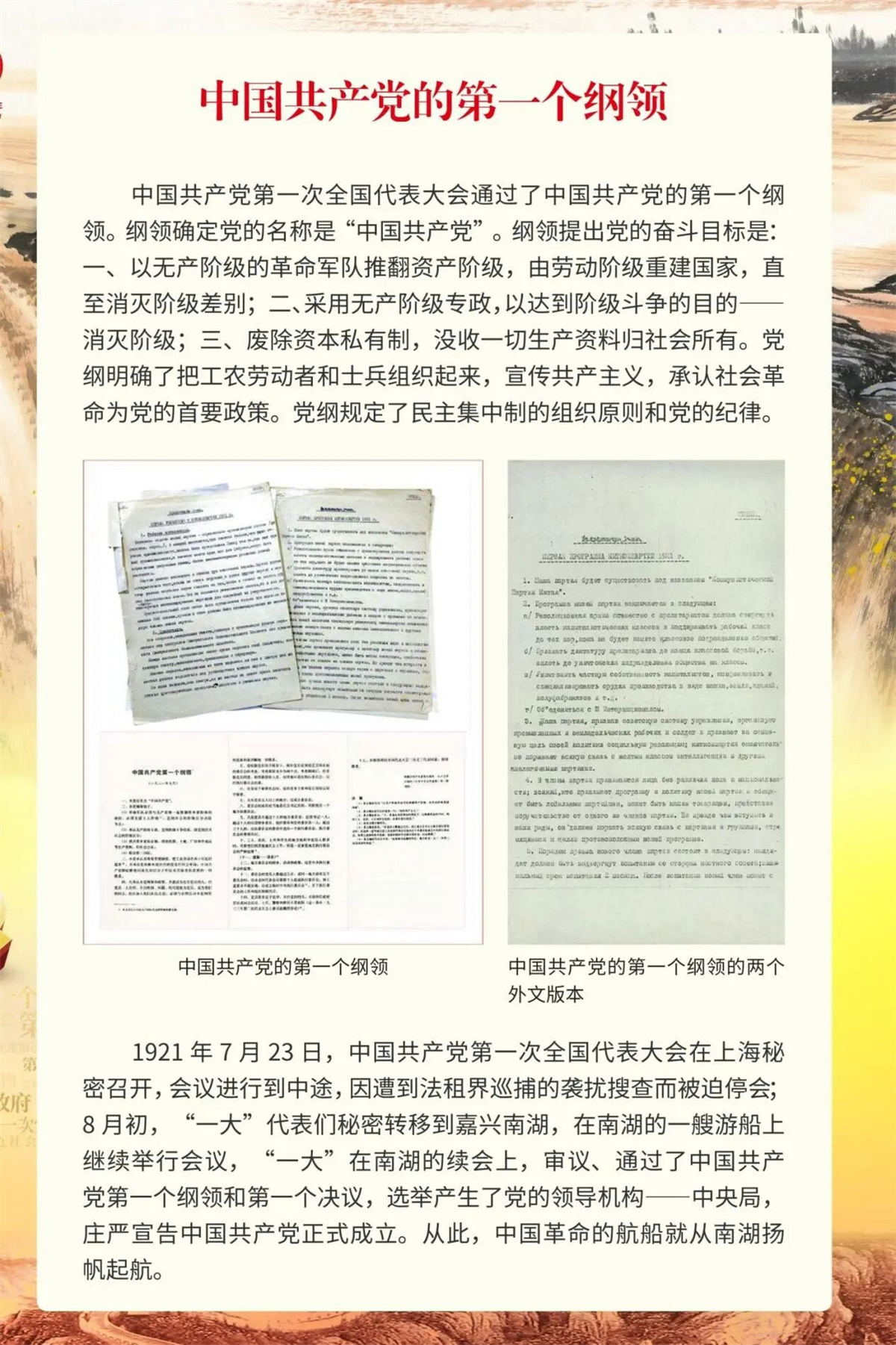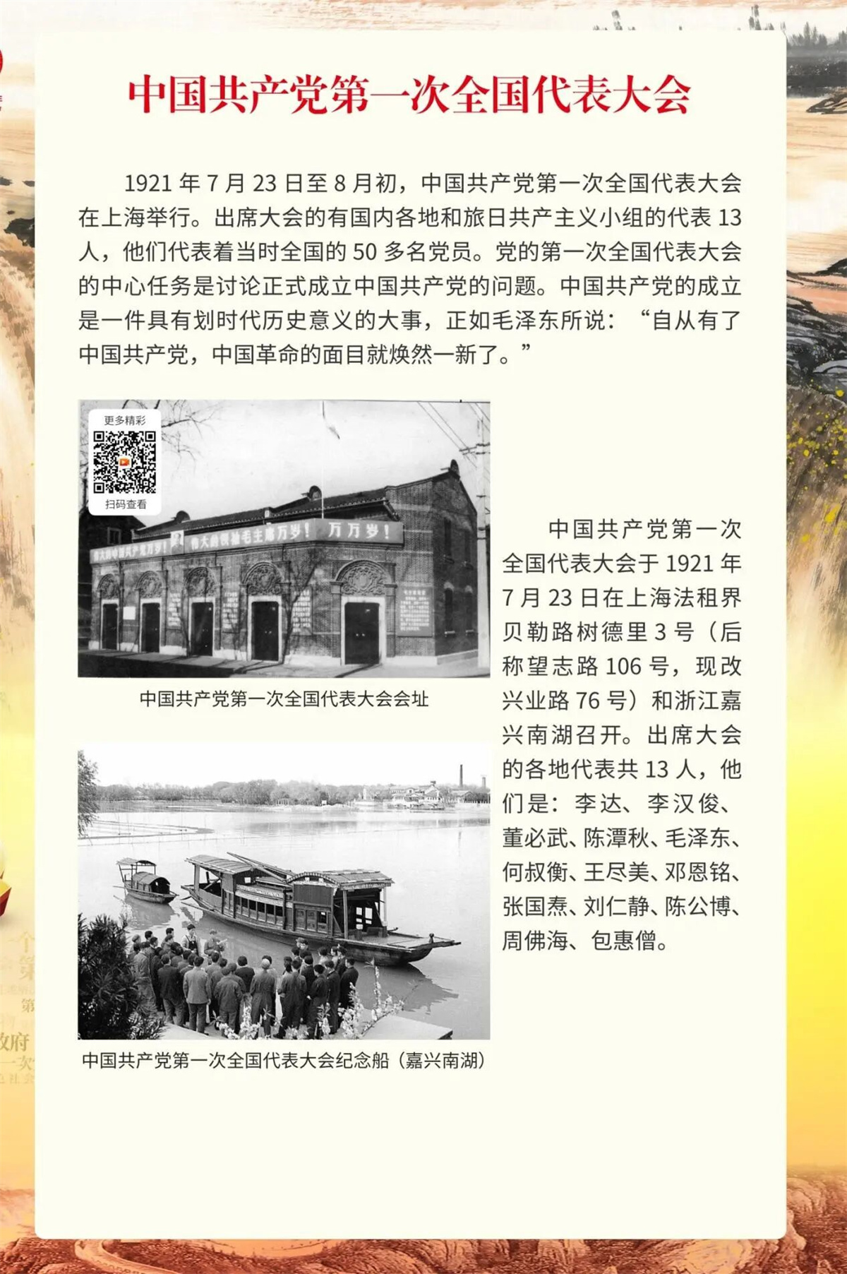 1921年,在浙江嘉兴南湖的游船上,中国共产党成立了。中国共产党在发展壮大过程中虽然经历了无数艰难险阻,但也产生了许多有巨大影响的“第一”,每一个“第一”,都是一个伟大壮举,都蕴含一段光荣历史。正是这无数个第一,才使中国共产党创造了发展奇迹。如今重温这些“第一”,我们更真切地体会到中国共产党在推动中国社会进步发展中显现的伟大创造性。百年风雨兼程,百年波澜壮阔,为了庆祝建党104周年,我们特别策划了“中国共产党党史上的第一”线上展览,让人们了解党的光辉历史的同时,也更加热爱党、热爱我们的国家,为实现中华民族的伟大复兴献出自己的一份力量。